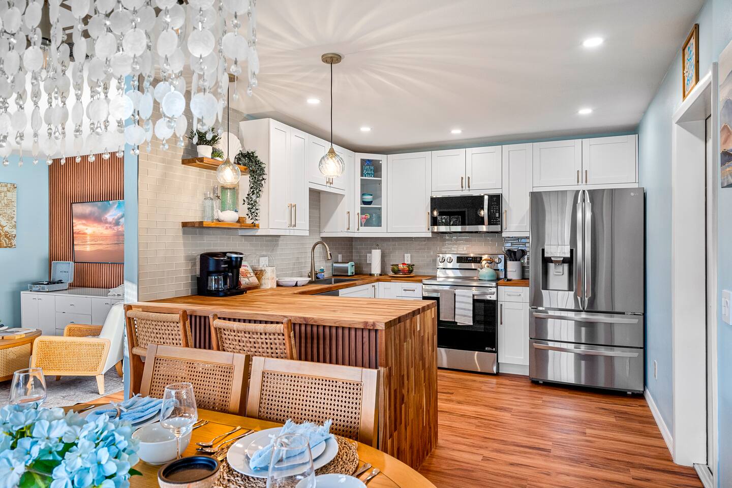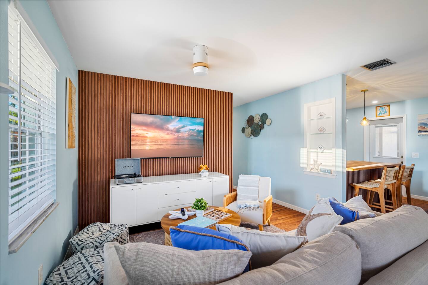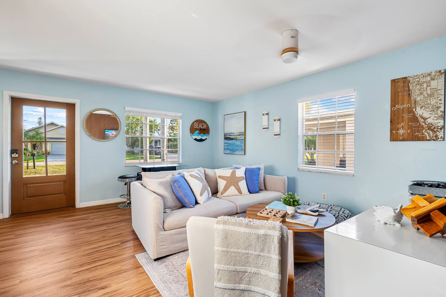1 King Master Bedroom with ensuite bathroom/walk-in shower 1 Queen Master Guest Bedroom 1 Bunk Bedroom (twin/queen beds) 1 Full Bathroom with tub/shower Living Room with 58" Smart TV Renovated Kitchen with all new stainless steel appliances Laundry Room with washer & dryer AMENITIES: Free WiFi TVs in All Bedrooms Table Arcade Games & Puzzles Vintage Vinyl Record Player Keurig Coffee Machine Beach Towels Beach Umbrella Beach Chairs Beach Toys Portable Cooler Air Condition/Heat Compliments from Guests & Why They Love It: β’ Spotlessly clean & beautifully updated β stylish, modern, and exactly as pictured β’ Perfect Naples location β close to beaches, restaurants, shops, and local favorites β’ Exceptionally comfortable β cozy living spaces, great beds, and a fully stocked kitchen β’ Family-friendly & fun β arcade games, board games, bunk beds, and beach gear included β’ Thoughtful amenities β outdoor patio with grill, washer/dryer, and beach essentials β’ Outstanding host β Caroline is highly responsive, flexible, and truly makes guests feel at home Your beach escape is ready...are you in?