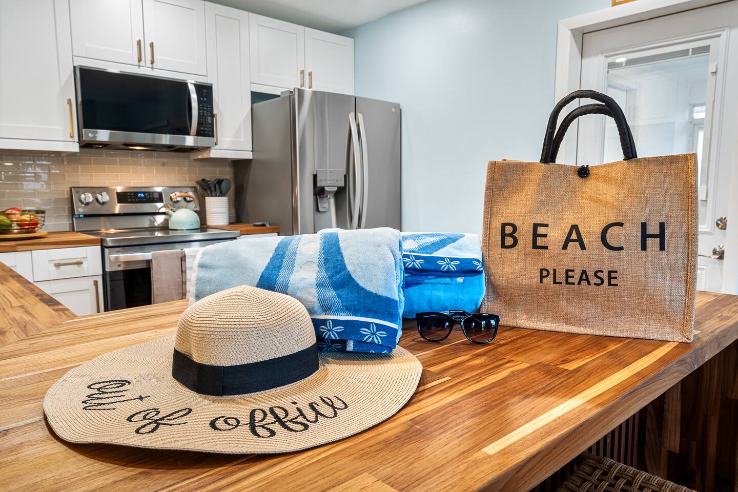 - Beach essentials Beach towels, umbrella, beach blanket, snorkeling gear